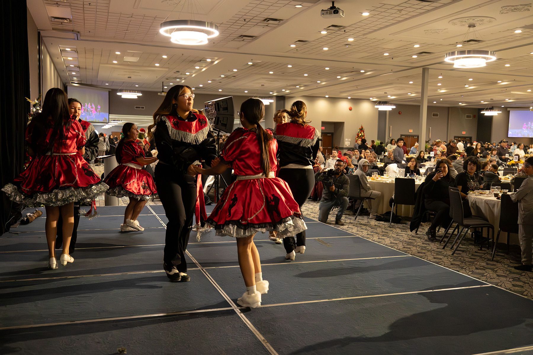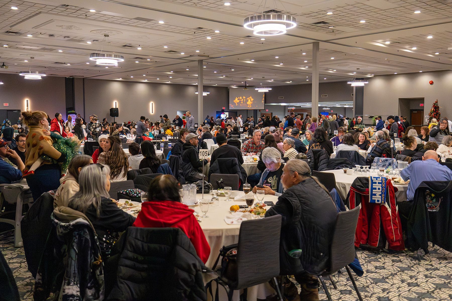 The Winnipeg dinner, for Members living in the Winnipeg and Selkirk areas, was held at the Victoria Inn on December 16, 2025. 1,500 plates were provided to Members. Christmas characters were on site entertaining families, Christmas photo booth and pictures with Santa were available, with a free gift for the kids. Members were provided entertainments by Mason Hoop Dancers and Peguis Square Dancers.