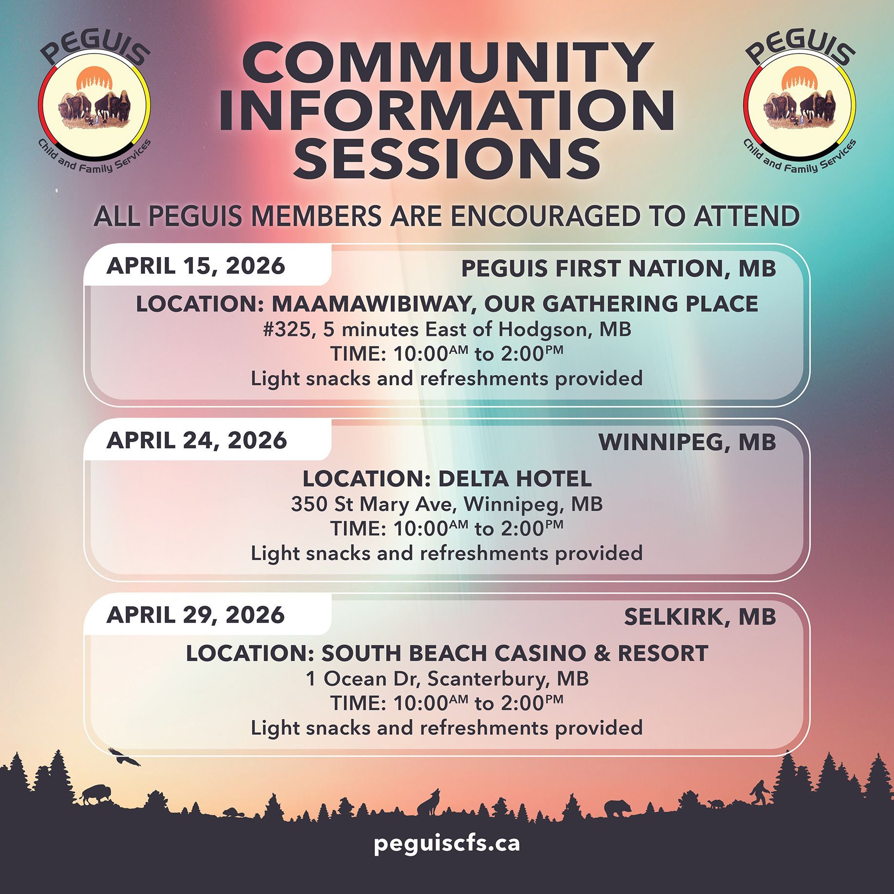Schedule is subject to change. Hair Cutting Lessons and Free Hair Cuts Hair Cutting Lessons that were previously cancelled are taking place as scheduled for Reclaiming Our Ways and Free Hair Cuts that were cancelled are taking place for Ogichidaa Men’s Group. Hair Cutting Lessons take place today, Thursday, January 8, 2026 from 1:00 pm to 5:00pm at Peguis Main Office. Free Hair Cuts (men only, 18+) take place tomorrow, Friday, January 9, 2026, from 12:00 pm to 4:00 pm at Peguis Main Office. No transportation provided.
