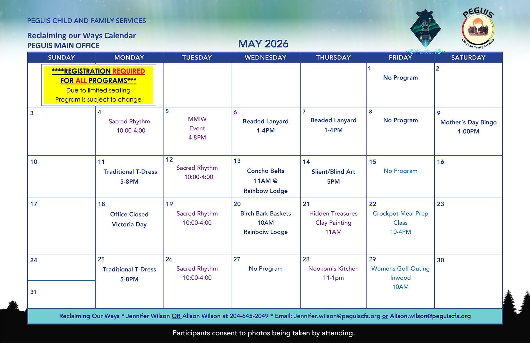 Debinan Youth Program, Peguis, Ages 7-12, May 2026 Calendar