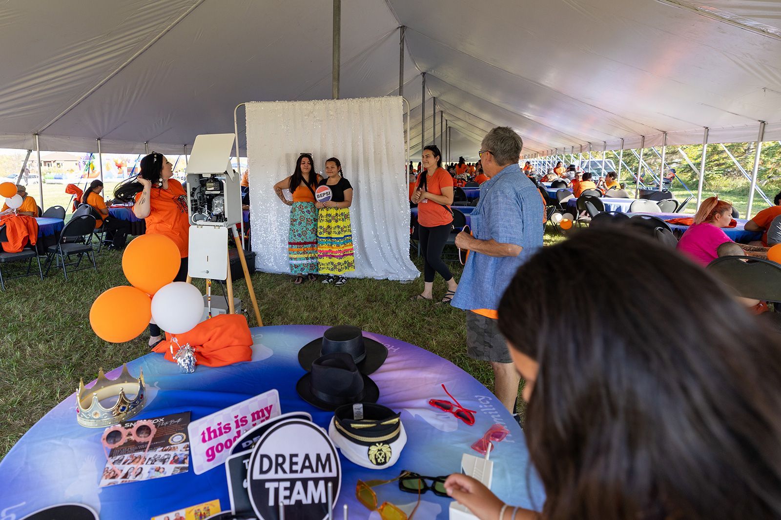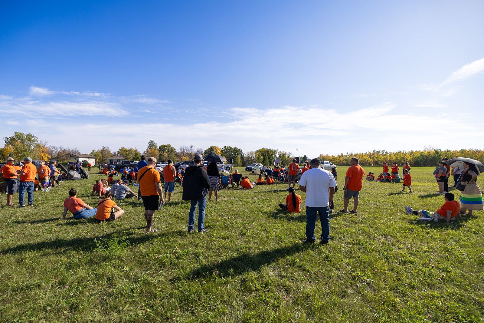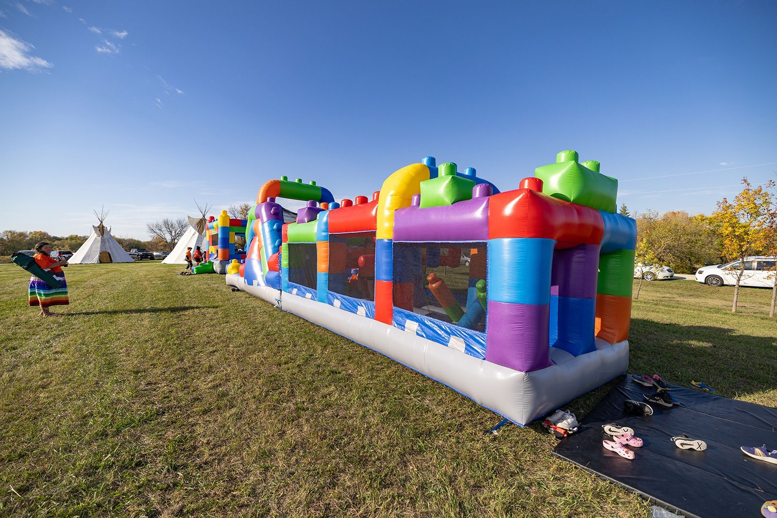 Following the land blessing, attendees made their way to Old Stone Church (0 Old Stone Church Road, St.Clements, MB) for a Celebration. A big feast, bouncy castles, slides, games and activities were set up on site for children. As part of the celebration was the opportunity to sit and listen to Story Telling by Elders in Tipi.